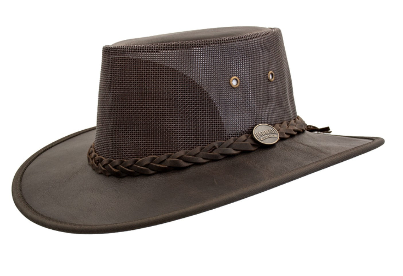Kangaroo leather with a stonewash crackle wax finish. High quality USA mesh crown allows cool flow of air.